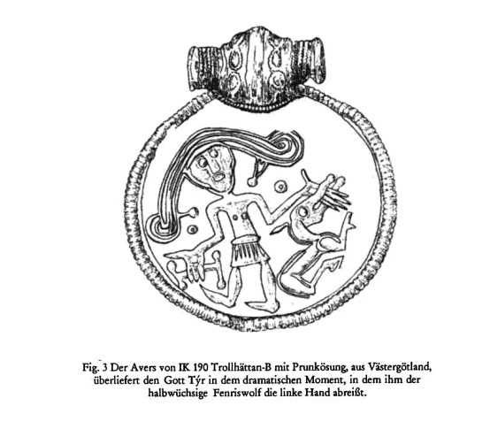 2 Tyr in the Norse mythology sacrifices his arm to the monstrous wolf Fenrir. Týr is the namesake of the Tiwaz rune (ᛏ).
